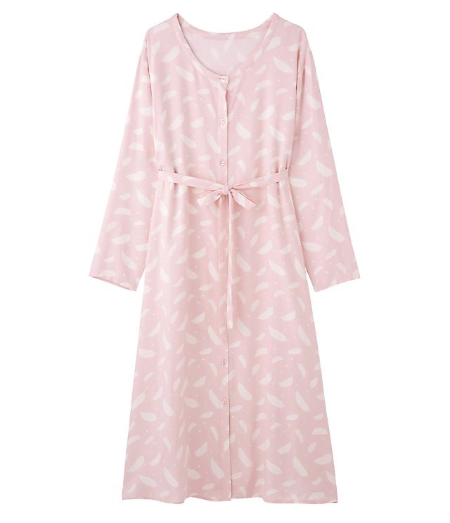 裏起毛サテンシャツワンピ ルームウェア パジャマ Peach Peach アンダーウェア John ピーチジョン のファッション 裏起毛サテンで肌に優しい あたたかい前開きワンピース